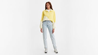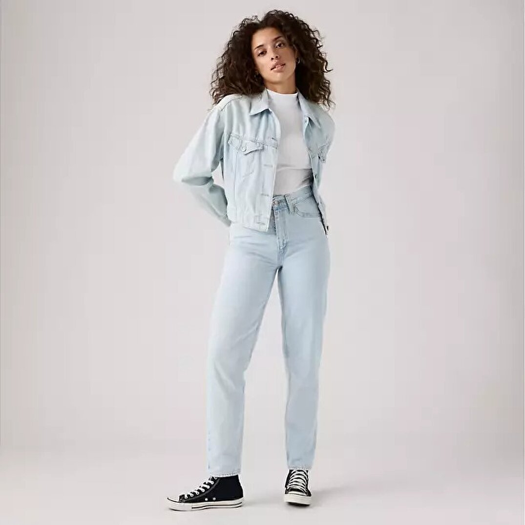 Anneler ilk günden beri ikonik görünümlerle karşımıza çıkıyorlar ve rahat, yüksek belli jeanlere olan ilgileri 80'lerin sonlarından bu yana istisna değil. Zamansız Mom jeanlerinin bir yükseltilmiş versiyonu olan bu '80'ler Mom jeanleri, uyluktan bileğe doğru daralan, ancak kalçadan ve baldırdan daha rahat bir yüksek belli ile donatılmıştır. Model 175 cm boyunda ve 24 x 30 beden giymektedir.
