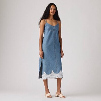 Zamansız slip elbisenin denim yorumu. ‘90’lardan ilham alan Denim Slip Dress, kolsuz tasarımı ve mini boyuyla vücudu zarifçe takip eden bir siluet sunar. Yumuşak denim dokusu sayesinde hem rahat hem de modern bir görünüm yaratır.