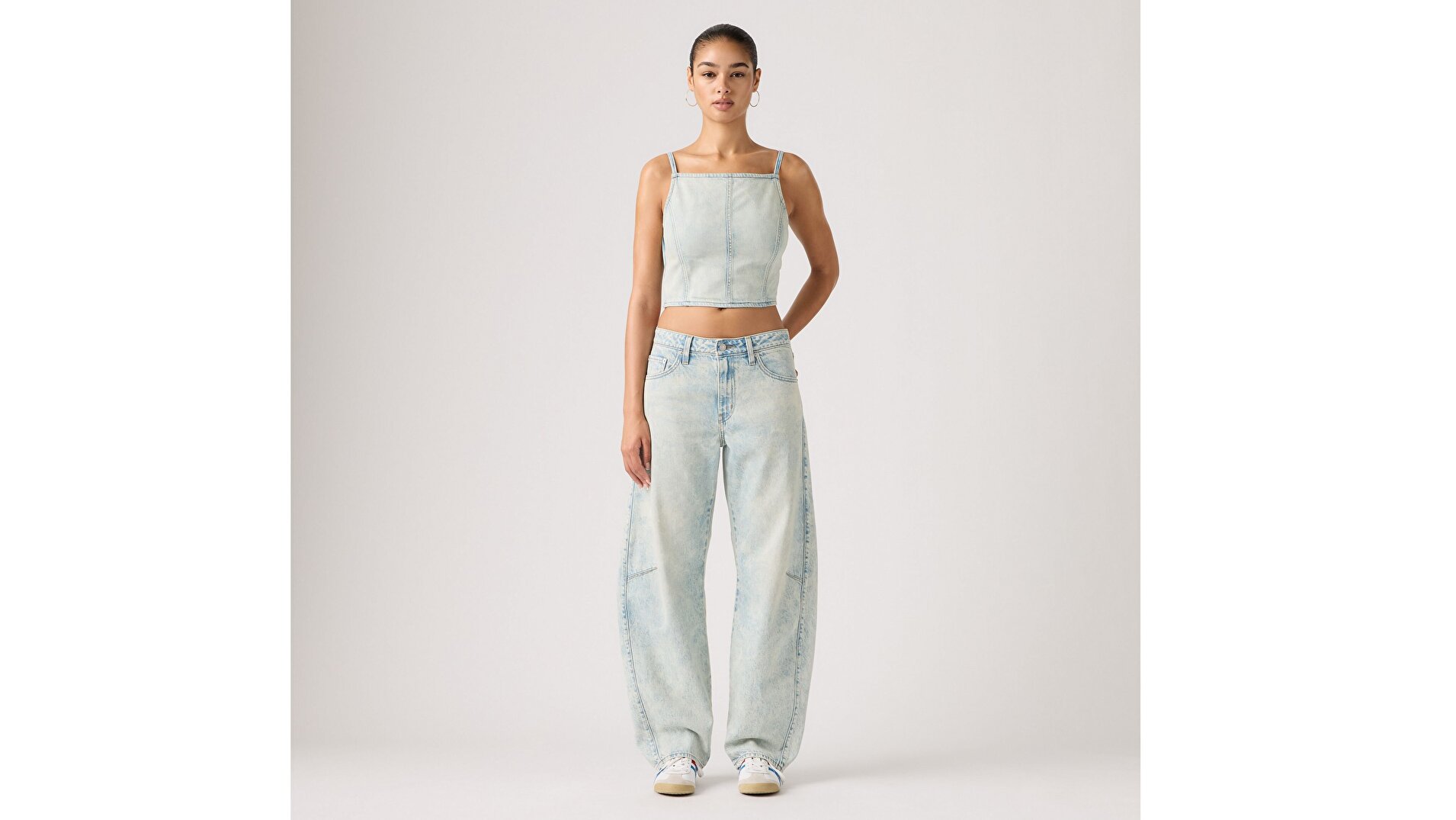 Kavisli paça geri döndü ve kalıcı olmaya geldi. Orta bel yüksekliği ve loose fit kesimiyle Baggy Dad Barrel Jean, rahat ama aynı zamanda vücudu iyi gösteren bir siluet sunar. Basen ve uylukta ekstra alan sağlayan yapısıyla modern, cool ve özgüvenli bir görünüm yaratır. Daha da bol bir duruş istersen, günlük bedeninden bir beden büyük seçmeni öneririz.