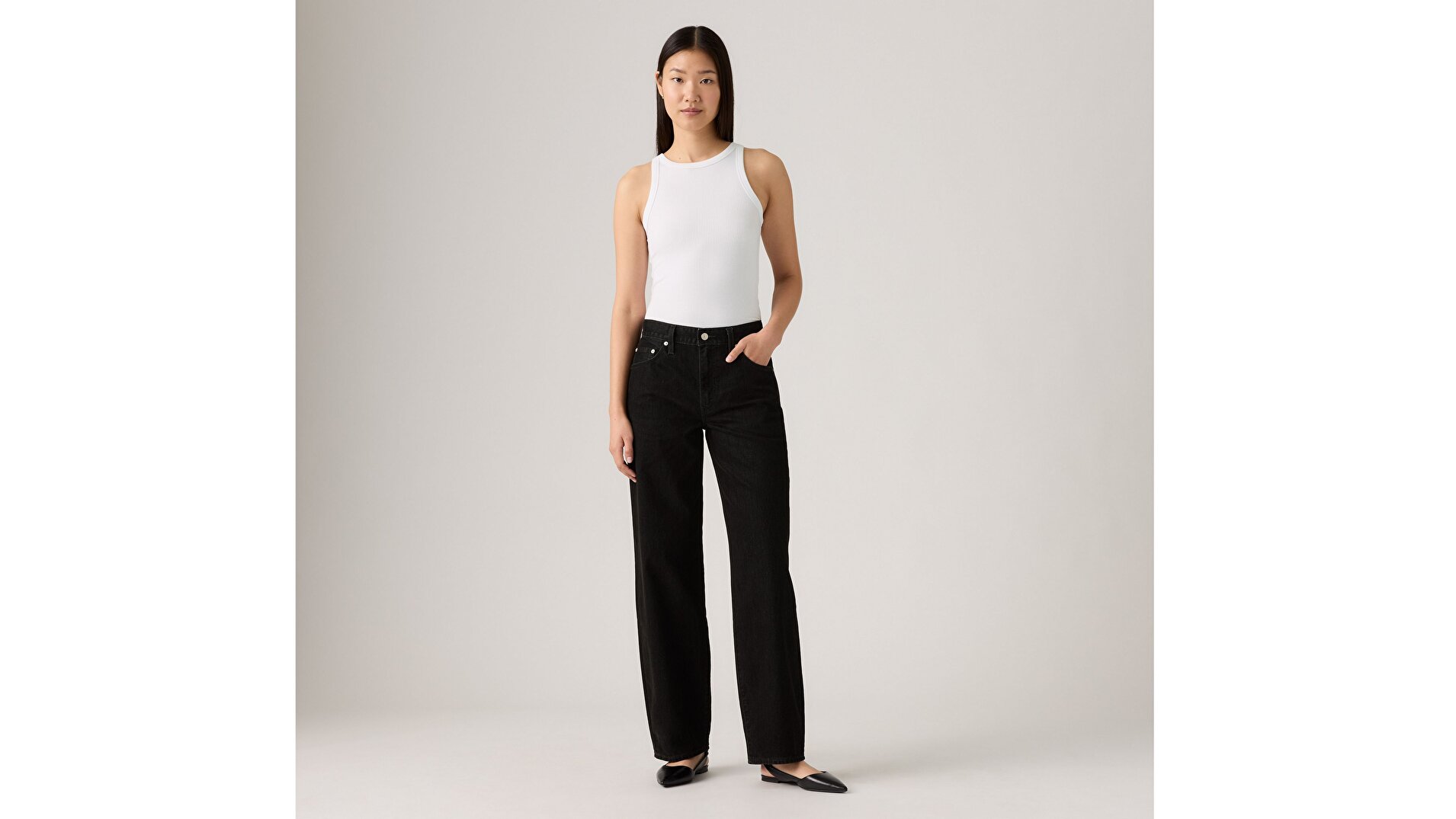 - Orta bel ve düz paça kesimi.