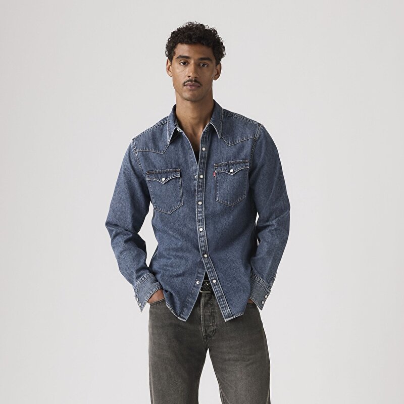 Kovboy çizmeleri ve chaps'ler dahil değil. Amerikan Batısı'na kök salmış bir marka olarak, bu güçlü ama özenli Relaxed Western Shirt modelinden daha çok sevdiğimiz bir parça yok. Bu zamansız gömlek, klasiklere sadık kalarak çıtçıtlı ön kapama, sivri yakalı omuz detayı ve kıvrımlı etek ucu gibi ikonik detaylarla geliyor. En sevdiğin mavi jean'le kombinleyip efsanevi denim-üstüne-denim görünümünü yakalayabilir ya da bir beden büyük tercih edip ceket gibi kullanabilirsin—Vahşi Batı’da kurallar yok!