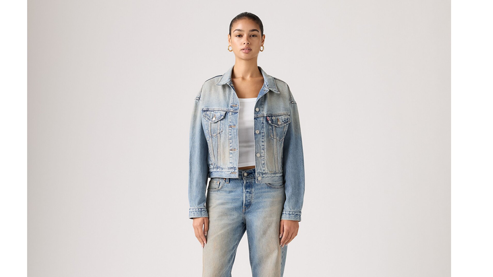 İkonik '90s Trucker Jacket modelimiz bu kez crop kesimiyle güncelleniyor. Daha rahat bir forma, çok yönlü bir ağırlığa ve kendiliğinden cool bir görünüme sahip bir ceket bulmak gerçekten zor. Bonus: Bu vintage esintili model, belirgin ’90’lar havası veren pitched siluetiyle öne çıkıyor.