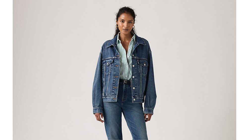 Original Trucker All İndigo Kadın Trucker, dik yakası ve düğmeli göğüs cebine sahip tasarımıyla günlük şıklığınızın vazgeçilmezi olacak. Esnek olmayan yapısı sayesinde daha dayanıklı, şekil koruyucu ve stabil bir yapıya sahiptir. Uzun süreli kullanımlarda deformasyona uğramayarak şeklini korur. Lola Gömlek Ceket, rahat kesimi ve ön kısmındaki düğme detayıyla şıklığınızı ön plana çıkarır. Eğik şerit ve cep detaylarıyla Levi's® stilini ortaya koyar.