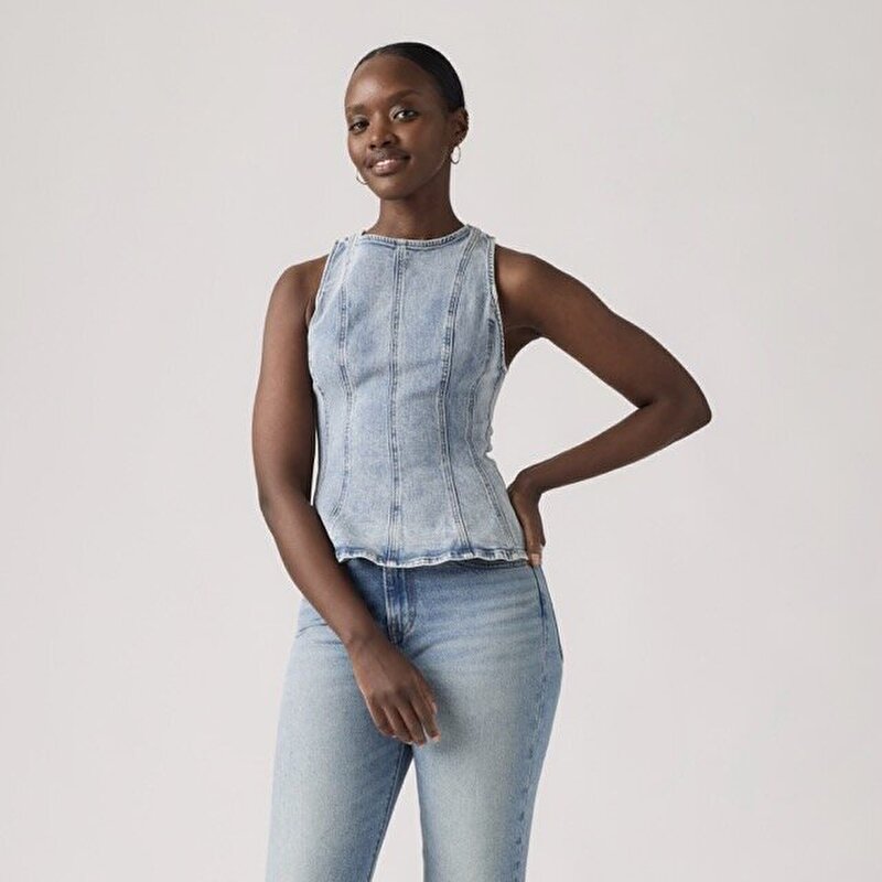 Leighton Peplum Denim Bluz gerçekten özel bir his uyandırıyor. Yüksek yakası, dikiş detayları ve vücuda oturan şık kesimiyle öne çıkıyor.