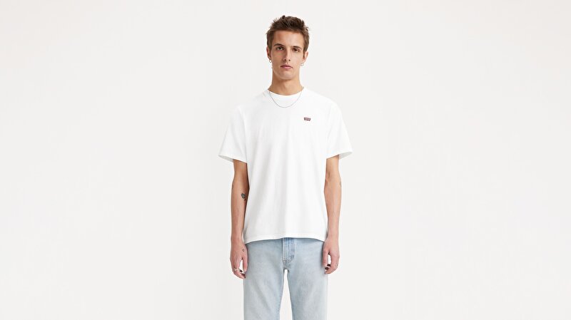 Sol göğüste kırmızı Levi's logolu klasik pamuklu tişört.
