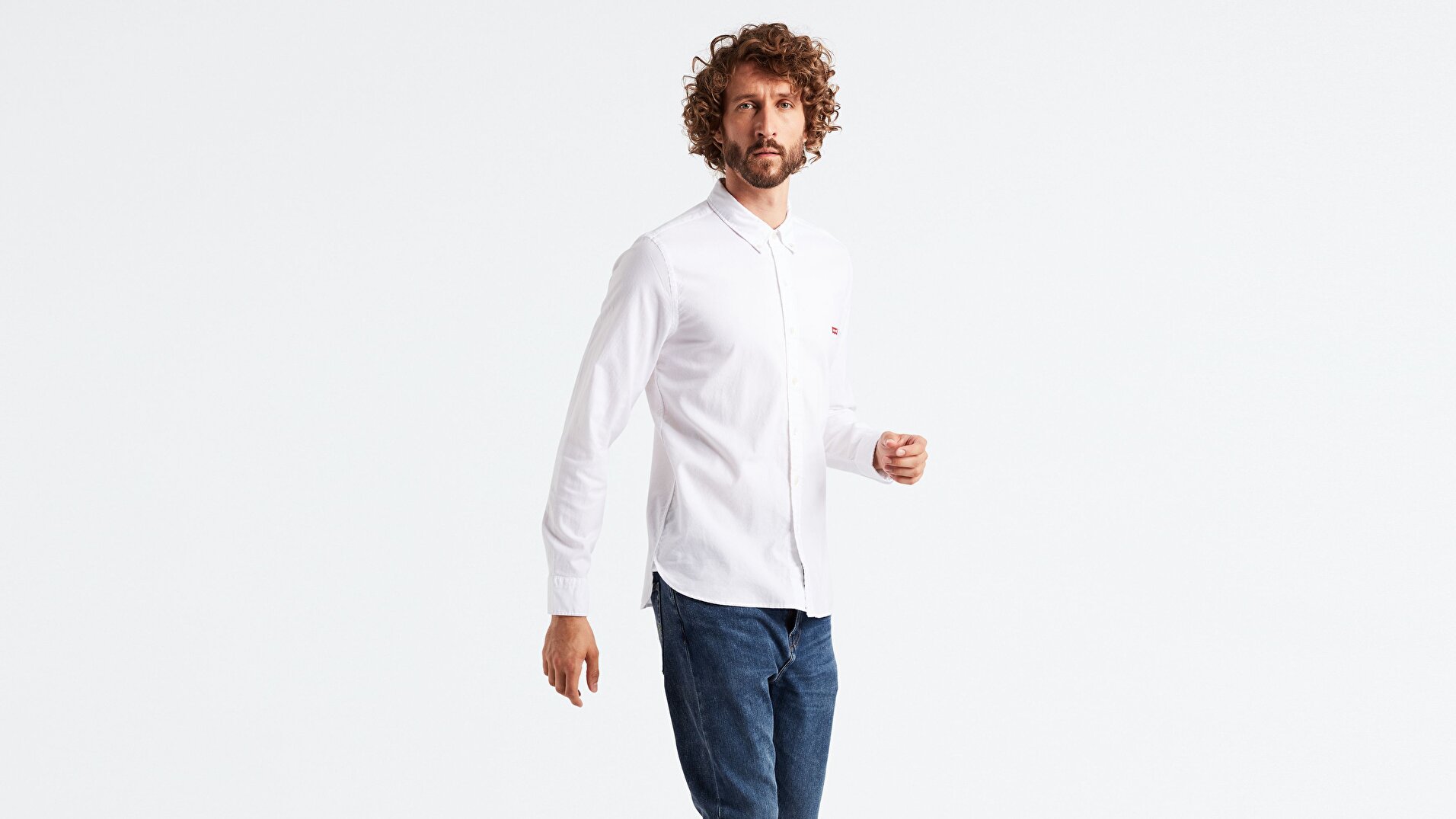 Klasik uzun kollu, düğmeli gömlek. Göğüs kısmında Levi’s® kurumsal logosu.