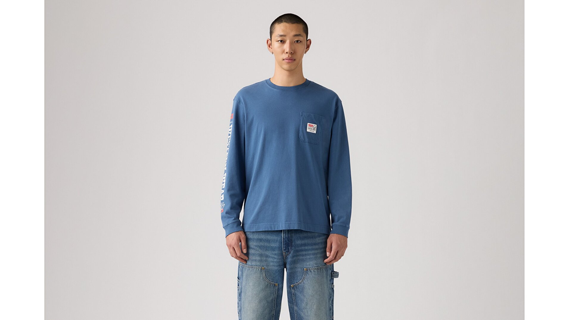 Bu sınırlı üretim uzun kollu cepli tişört, mavi vintage yıkamasıyla öne çıkar. Arka kısmındaki Woody-Buzz illüstrasyonu, koldaki büyük logo ve göğüsteki karakter logolu yama ile tamamlanmıştır.