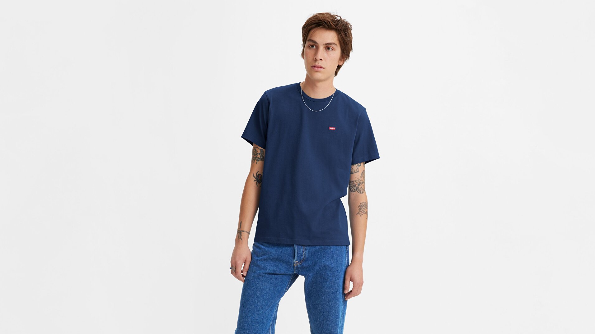 Klasik pamuklu tişört.Küçük Levi's® logosu göğüste. Standart kesim, hafif bol kesim. Model M beden giyiyor.