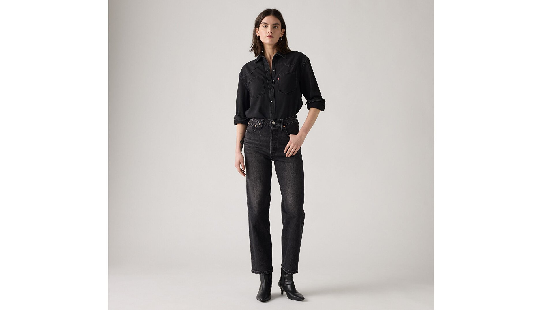 Şimdiye kadarki en yüksek belimiz. 12 inçlik yükselişiyle Ribcage Straight jean, beli belirginleştiren ve bacak boyunu optik olarak uzatan ikonik bir siluet yaratarak birçok kişinin favorisi haline geldi. Bu fit, vücut hatlarını öne çıkarırken kendini en az göründüğün kadar harika hissetmeni sağlar.