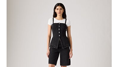 Cesur, feminen ve dozunda iddialı. Bu --Tailored Bustier Top--, yumuşak kare yaka detayı, önden düğmeli tasarımı ve vücuda oturan slim fit kesimiyle hem modern hem zarif bir görünüm sunar.