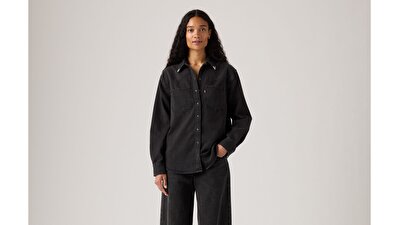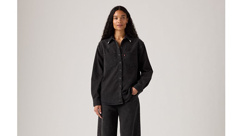 Kovboy çizmeleri dahil değil. Teodora Western Gömlek, western tarzının feminen bir yorumu. Klasik çıtçıtlı önü, iki kapaklı cebi, rahat kalıbı ve western esintili omuz detayıyla öne çıkıyor.
