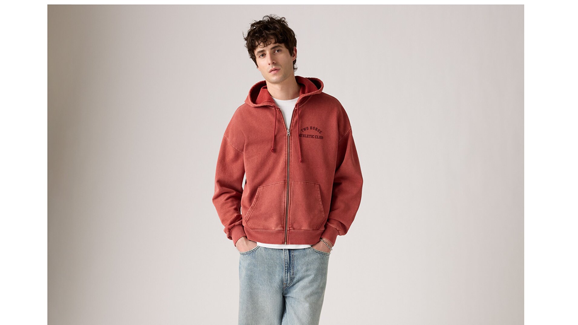 Gerekli bir katman ve tam kararında kısa kesim: Two Horse Zip-Up Sweatshirt, rahat bir kesimle tasarlanmış ve Levi's® imzalı Two Horse tasarımıyla tamamlanmıştır.